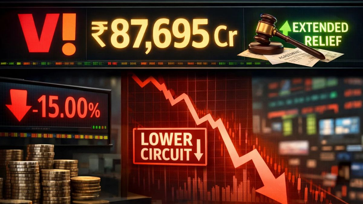 Vodafone Idea के शेयर AGR राहत पैकेज की खबरों के बीच 15% लोअर सर्किट में चले गए. कैबिनेट ने कंपनी की ₹87,695 करोड़ की AGR देनदारी को फ्रीज करते हुए 5 साल का मोरेटोरियम मंजूर किया है. हालांकि, ब्याज और पेनल्टी माफी पर अभी स्पष्टता नहीं है. भारी कर्ज और फंडिंग संकट से जूझ रही Vi के लिए यह फैसला बड़ी राहत माना जा रहा है.;