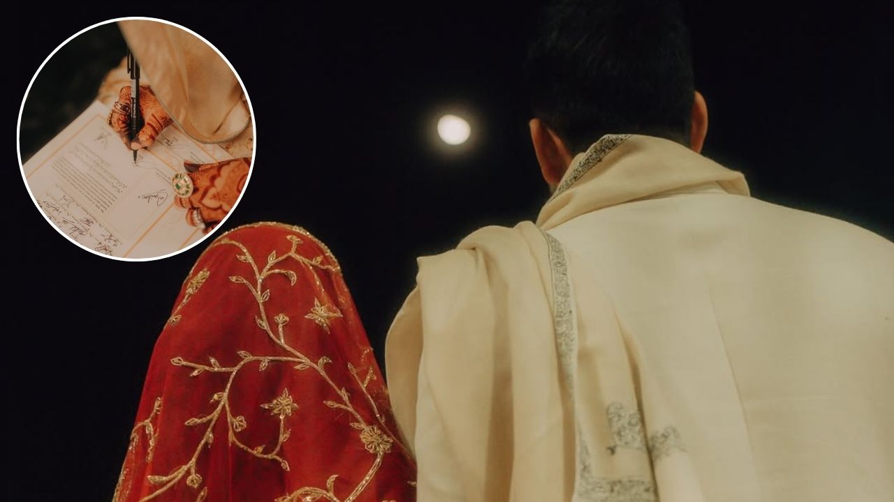 ज़ायरा वसीम ने अपने निकाह की दो बेहद सुंदर तस्वीरें शेयर कीं. पहली तस्वीर में वह ‘निकाहनामा’ पर हस्ताक्षर करती दिखाई दीं. उनके हाथों में लगी मेहंदी और हरे पन्ने की अंगूठी उनकी मुस्कराती शख्सियत को और भी निखार रही थी. यह क्षण उनके जीवन के नए सफर की शुरुआत का प्रतीक बना.