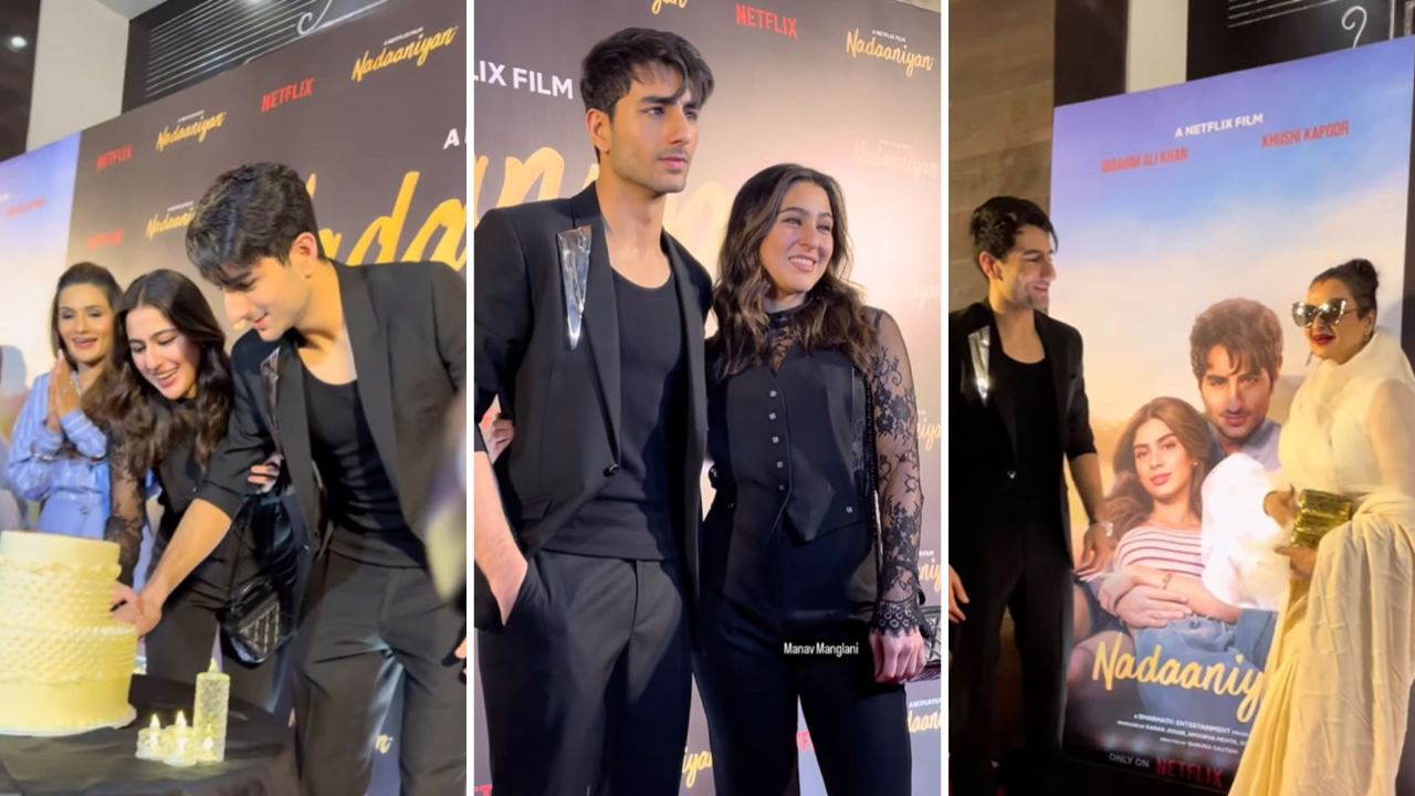 इस इवेंट में इब्राहिम और सारा अली खान ने ब्लैक आउटफिट पहना था. सुहाना खान भी लॉन्ग ब्लैक ड्रेस में दिखीं. जान्हवी कपूर ने व्हाइट टॉप और डेनिम और करण जौहर ने भी ब्लैक आउटफिट में नजर आए. एक वीडियो में इब्राहिम रेखा के साथ 'नादानियां' के पोस्टर के पास खड़े होकर पोज देते नजर आए. रेखा ने इब्राहिम और पोस्टर की तरफ प्यार से हाथ बढ़ाया.