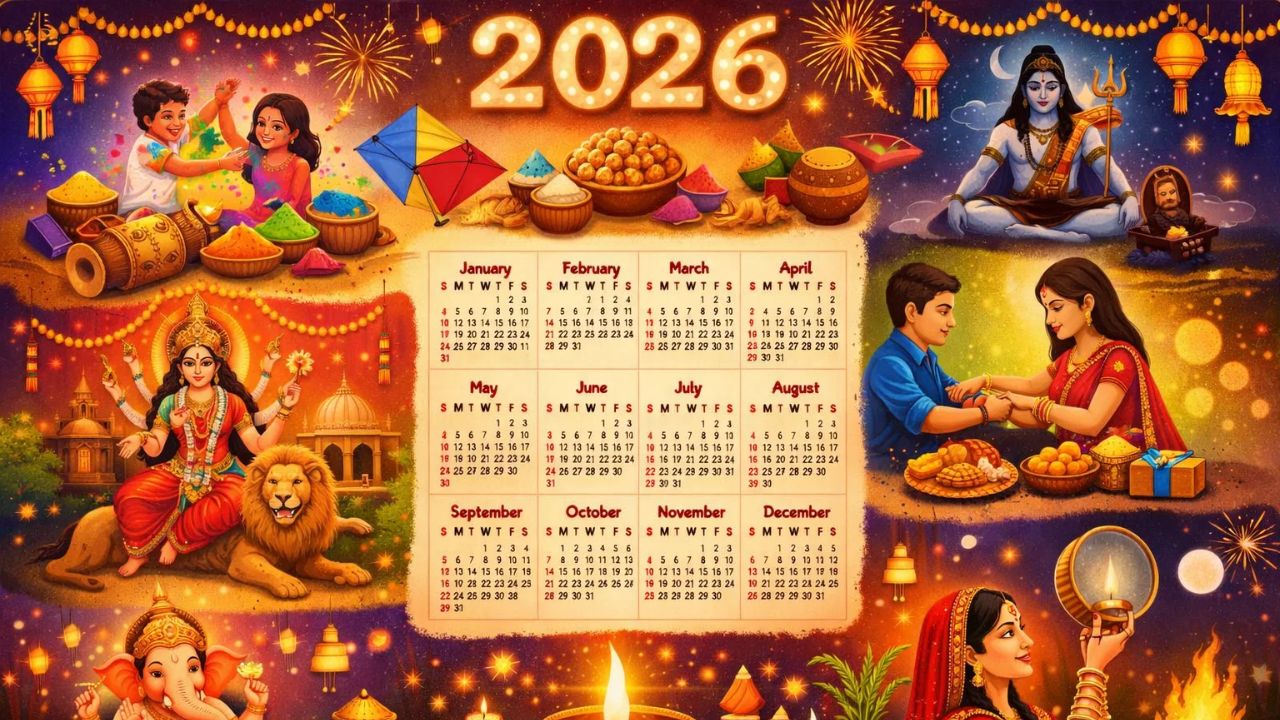नया साल कुछ ही घंटों में शुरू हो जाएगा. हर बार नए साल में व्यक्ति की यह इच्छा होती है कि किसी विशेष कार्य की शुरुआत शुभ दिन या किसी धार्मिक व्रत/पर्व वाले दिन की जाए. 2026 में भी पूजा, व्रत और पर्वों की तिथियों में बदलाव और संयोग के कारण सही तिथि जानना बेहद महत्वपूर्ण है. इसलिए आज हम आपको साल 2026 के हर छोटे-बड़े तीज त्योहार के बारे में जानकारी देनें वाले हैं कि कब-कब कौनसा त्योहार पड़ने वाला हैं?;