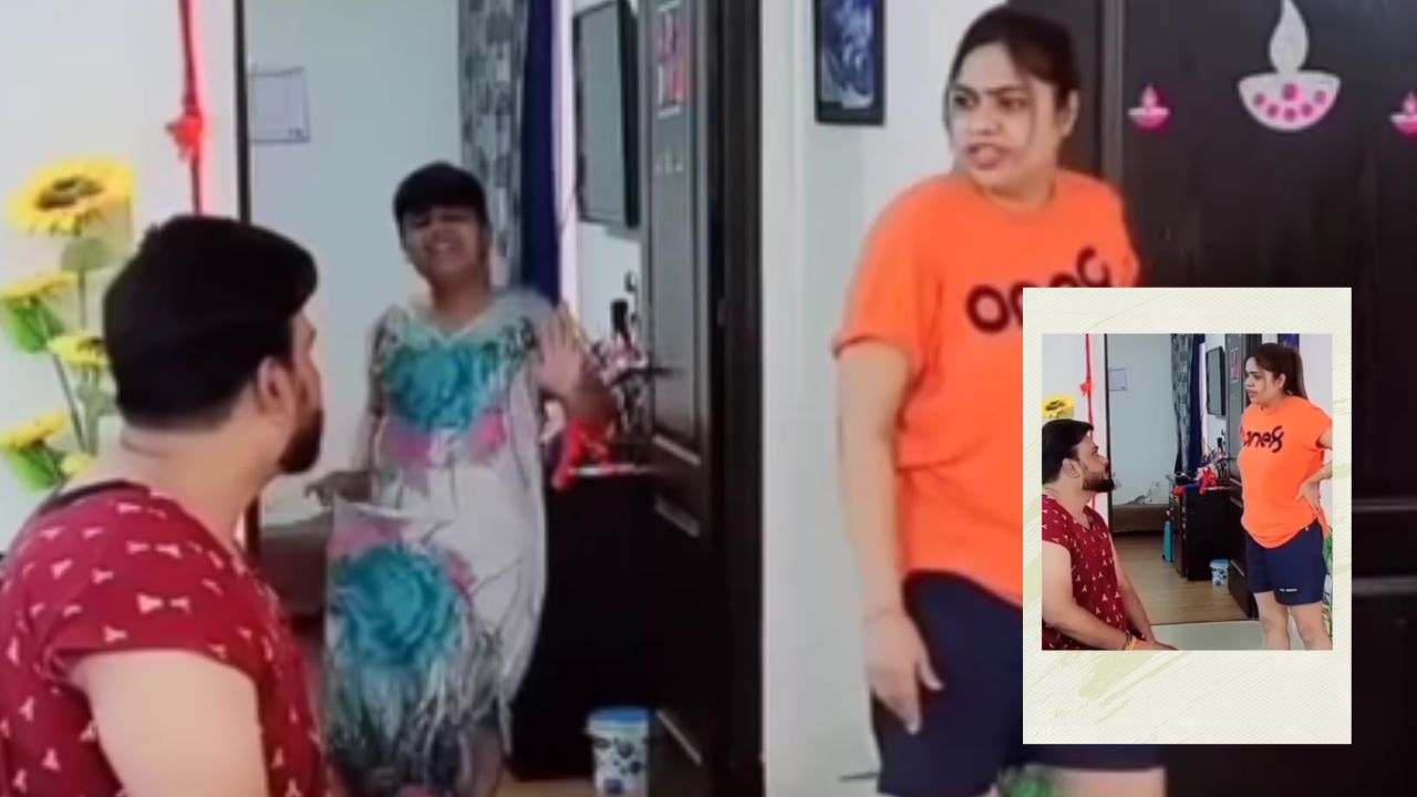 वायरल वीडियो में दिखाया गया है कि एक शख्स गर्मी से परेशान होकर सीधे मैक्सी पहन लेता है. उसकी पत्नी यह नजारा देखकर भड़क जाती है और कहती है, “इस घर में छोटा बच्चा भी है, वो क्या सीखेगा अपने बाप से?” महिला को यह बिल्कुल अजीब लगता है कि उसका पति औरतों वाला पहनावा क्यों पहन रहा है.