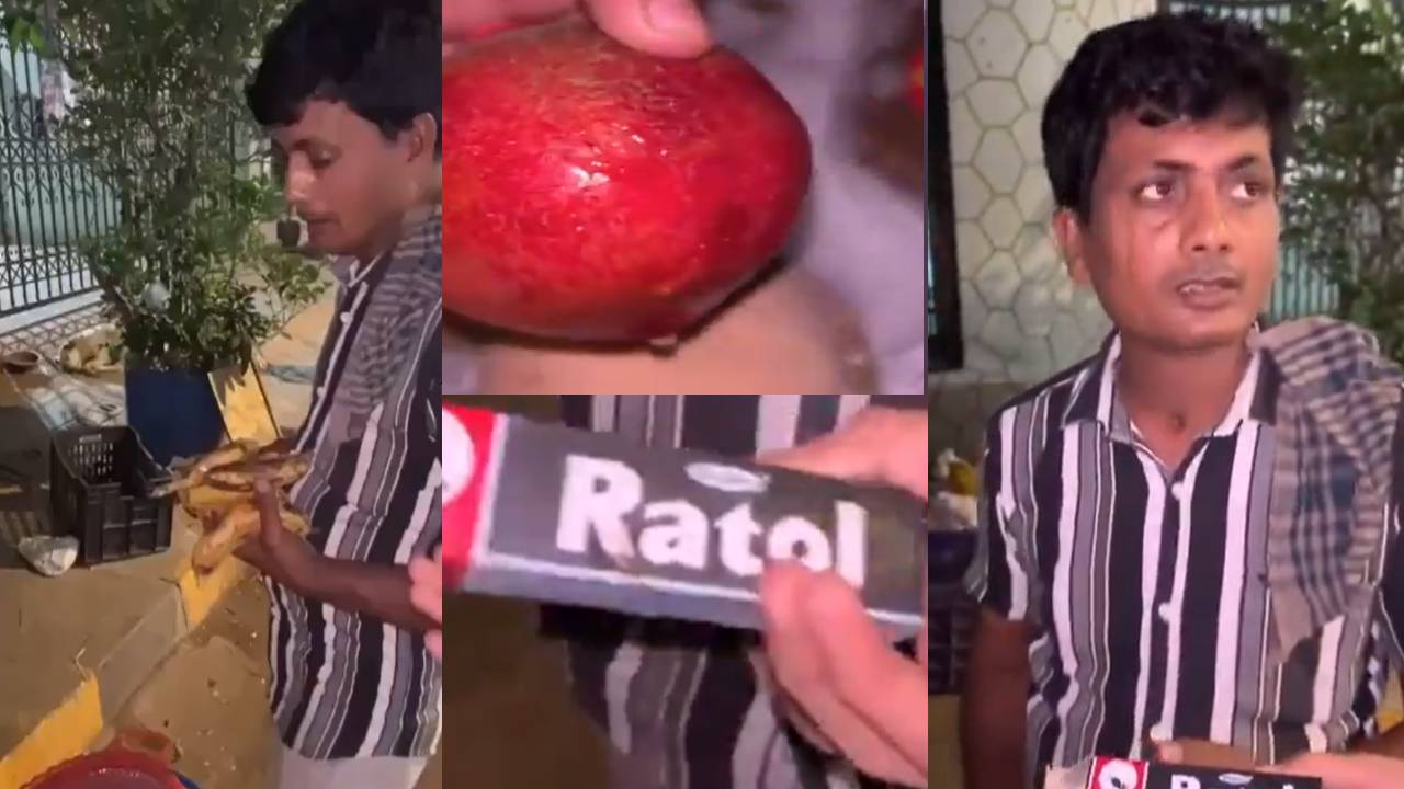 ये मामला बुधवार को सामने तब आया जब एक स्थानीय निवासी ने मलाड पुलिस में शिकायत दर्ज कराई और वीडियो सबूत के तौर पर जमा किया. शिकायत मिलने के बाद पुलिस ने सड़क किनारे लगे फल के ठेले पर पहुंचकर जांच की और वहां से 'रैटोल' नाम का पदार्थ बरामद किया, जो बाजार में मिलने वाली चूहे मारने की दवा है.