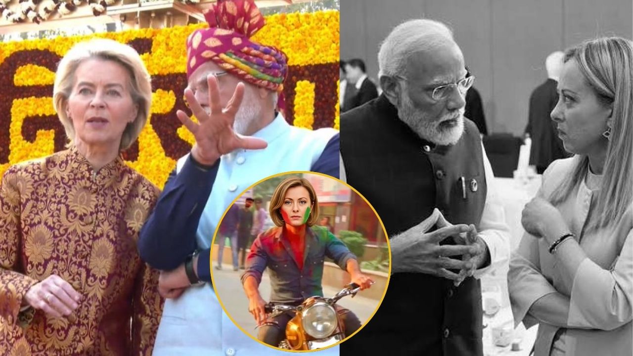 PM Modi और उर्सुला वॉन डेर लेयेन तस्वीर सोशल पर काफी वायरल हो रही है. यूजर्स Giorgia Meloni का नाम लेकर काफी मीम्स शेयर कर रहे हैं.;