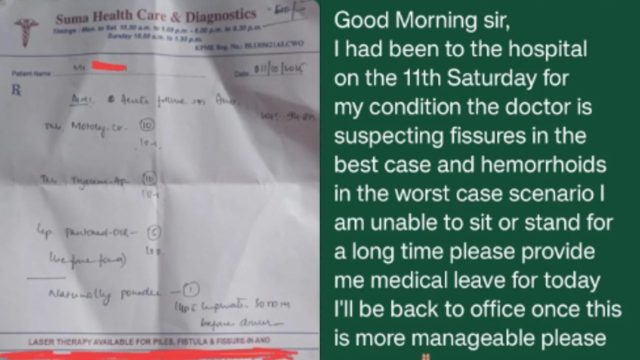 उसने डॉक्टर की रिपोर्ट व दवा की पर्ची भी बॉस को भेजी और उसने सिर्फ एक दिन की मेडिकल लीव मांगी. पोस्ट में लिखा, मैं लंबे समय तक बैठ या खड़ा नहीं हो सकता... प्लीज आज के लिए मेडिकल लीव दें. जब कोई जवाब नहीं मिला, तो उसने फिर लिखा कि हालत अब भी ठीक नहीं है.