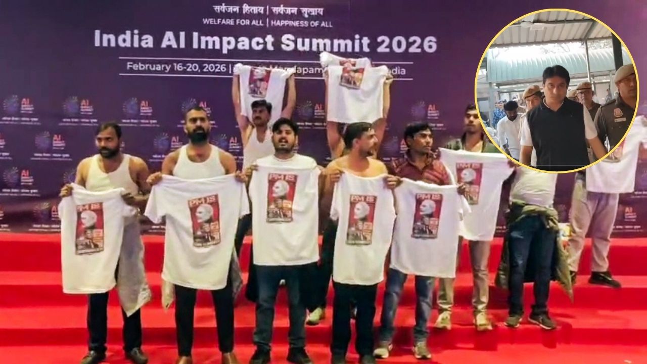 दिल्ली के भारत मंडपम में आयोजित ‘AI इम्पैक्ट समिट’ के दौरान यूथ कांग्रेस कार्यकर्ताओं ने अचानक शर्ट उतारकर विरोध प्रदर्शन किया. इस विरोध ने कार्यक्रम स्थल पर मौजूद लोगों को चौंका दिया. प्रदर्शन के दौरान प्रधानमंत्री के खिलाफ नारेबाजी की गई और भारत-अमेरिका व्यापार समझौते को लेकर भी विरोध दर्ज कराया गया. पुलिस ने तत्काल कार्रवाई करते हुए प्रदर्शनकारियों को हिरासत में लिया और मामले में एफआईआर दर्ज की.