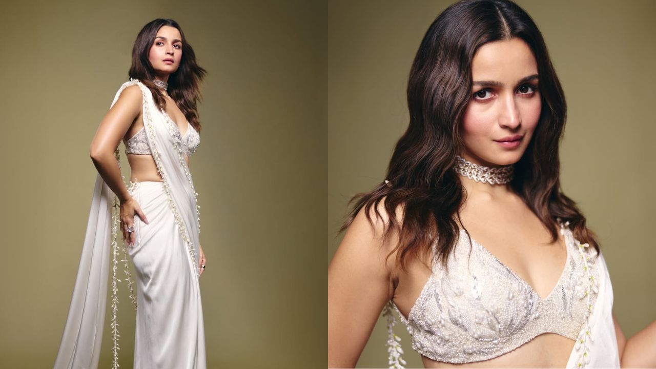 व्हाइट मोगरा साड़ी, मोतियों वाला ब्लाउज के साथ 38 कैरेट का डायमंड चोकर, Alia Bhatt का दिखा ग्लैमरस अवतार