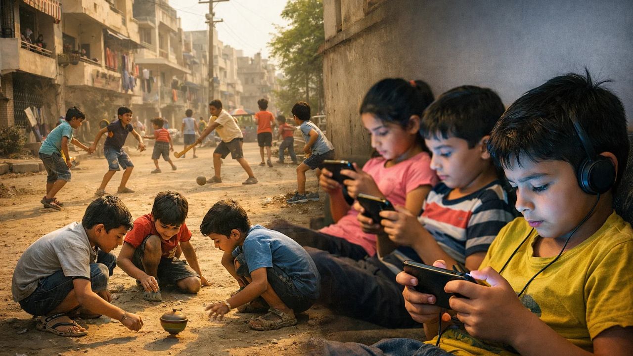 अब वही गली शाम को भी खाली रहती है. पार्क में झूले खाली झूलते रहते हैं. क्रिकेट की आवाज की जगह अब घरों के अंदर से आती मोबाइल गेम्स की धुन सुनाई देती है. बच्चे बाहर नहीं दिखते, क्योंकि वे कमरे के अंदर स्क्रीन के सामने बैठे होते हैं. उनकी उंगलियां दौड़ती हैं, लेकिन पैर नहीं.