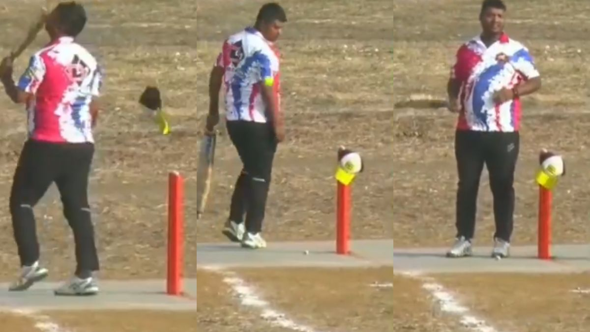 OUT या NOT OUT? बल्लेबाज की कैप ने गिराई बेल, अंपायर भी हुए कन्फ्यूज; वायरल वीडियो से क्रिकेट फैन्स में बहस तेज
