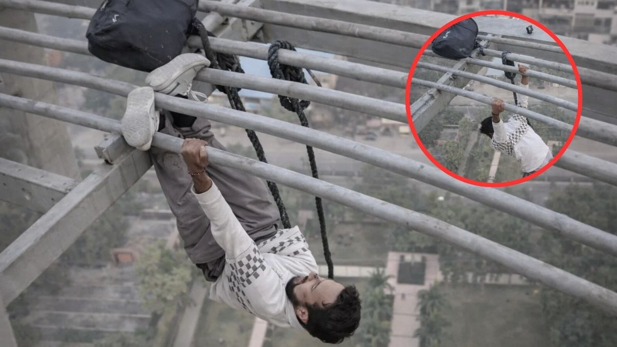 वीडियो में साफ देखा जा सकता है कि युवक के पास न तो सेफ्टी बेल्ट है और न ही कोई अन्य सुरक्षा इंतजाम. नीचे सैकड़ों फुट की ऊंचाई और ऊपर सोशल मीडिया पर वायरल होने की चाह... इसी खतरनाक जुनून ने उसे मौत के मुंह तक पहुंचा दिया.