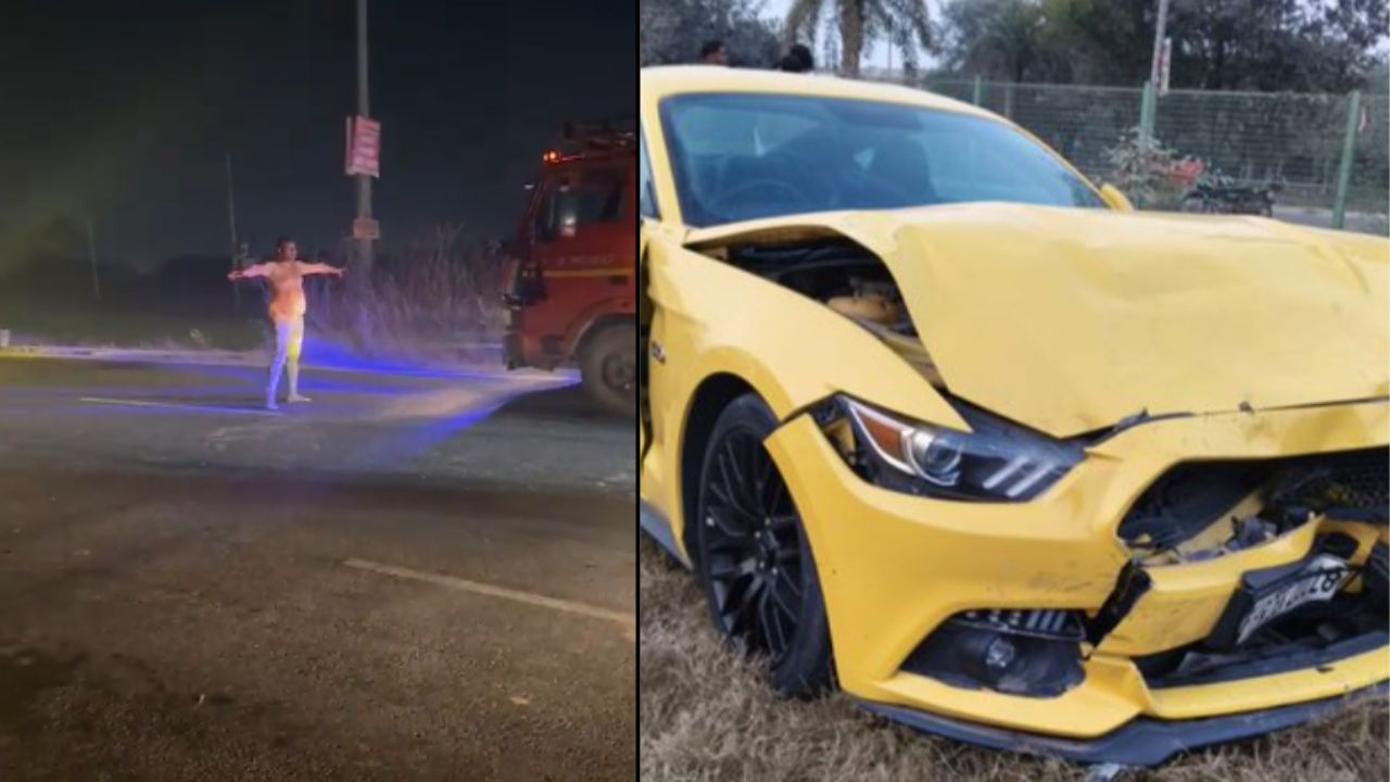 हरियाणा में मस्टैंग को फॉर्च्यूनर ने मारी टक्कर, अंदर बैठे थे दूल्हा-दुल्हन....फिर जो हुआ देखें इस Viral Video में