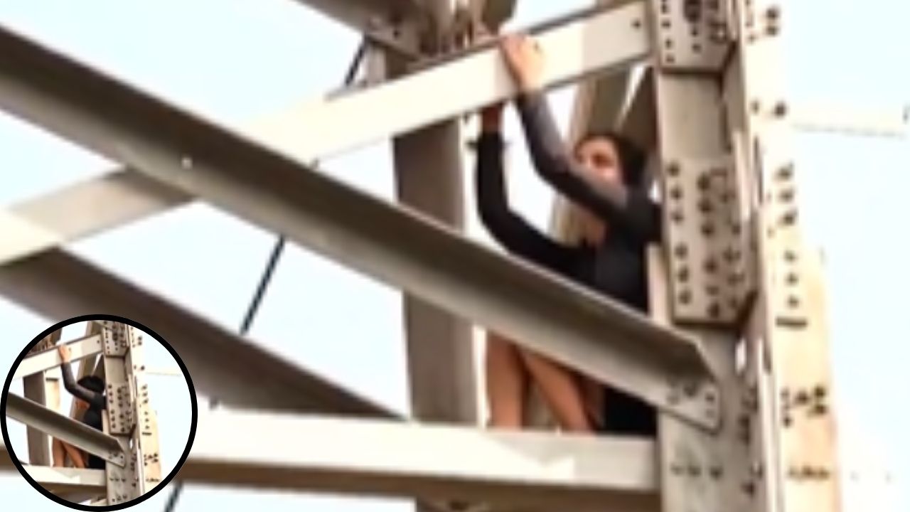 टॉवर पर चढ़कर लड़की का ड्रामा