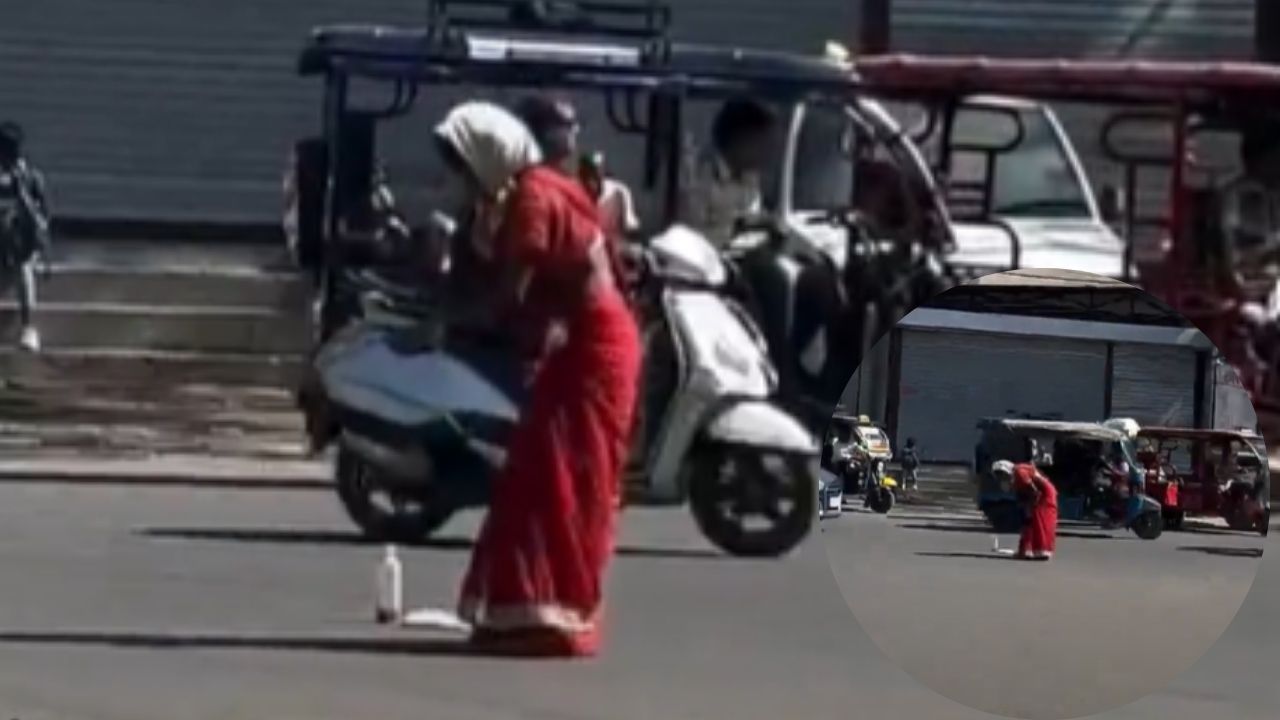 लाल साड़ी और बोतल में लाल पानी! जबलपुर में सड़क पर काला जादू करती नजर आई महिला