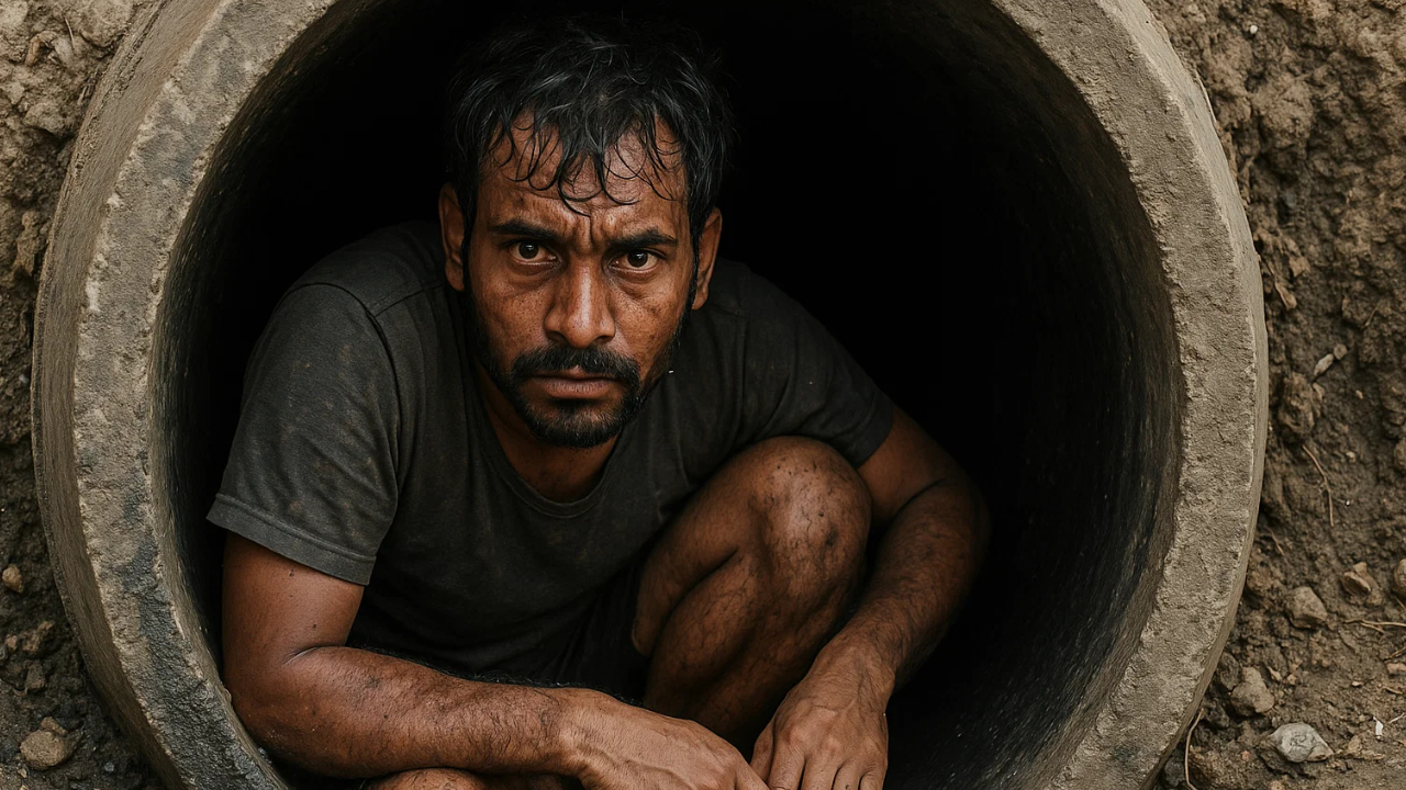 सीवेज पाइप में छिपा था आरोपी