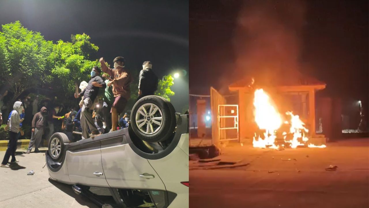 छात्रों ने परिसर में खड़ी दो कारों, एक बस, एक एम्बुलेंस और कई मोटरसाइकिलों को आग लगा दी. इसके अलावा, प्रदर्शनकारियों ने विश्वविद्यालय चांसलर के बंगले के कुछ हिस्सों में भी तोड़फोड़ की. वायरल वीडियो में आग की ऊंची लपटों के बीच छात्रों को नारे लगाते और वीडियो बनाते देखा जा सकता है.
