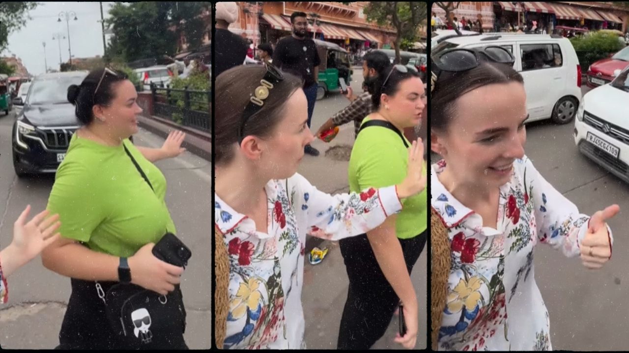 Jaipur Russian Woman Video: राजस्थान की राजधानी जयपुर जिसे पिंक सिटी के नाम से भी जाना जाता है. यहां रोजाना हजारों की संख्या में देश-विदेश से पर्यटक घूमने के लिए आते हैं. जयपुर का खाना और साड़ियों लोगों को बहुत पसंद होती है, खासकर महिलाओं को. इन दिनों दो रसिया की महिलाओं का वीडियो तेजी से वायरल हो रहा है, जिसमें वह सावधानी बरतते हुए रोड पार करती दिख रही हैं.