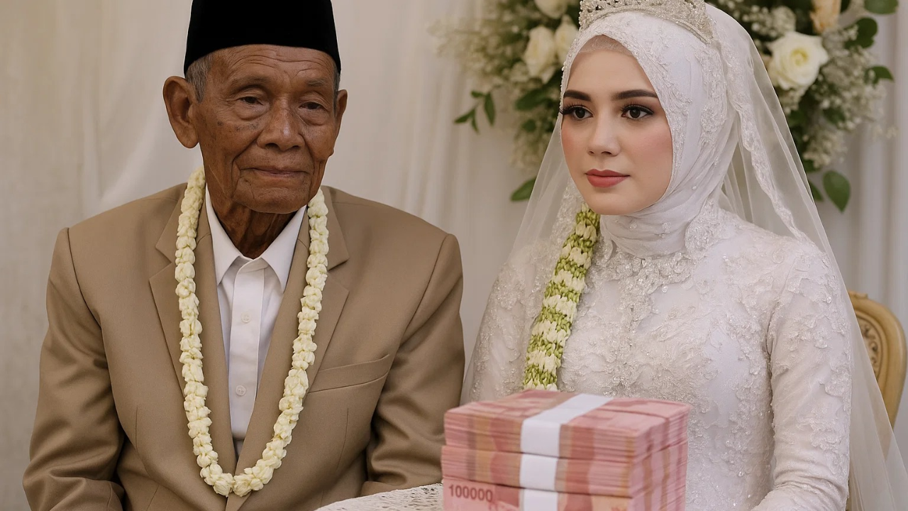 इंडोनेशिया से एक बेहद अनोखी और चर्चा में रहने वाली शादी की खबर सामने आई है. यहां एक 74 वर्षीय बुजुर्ग व्यक्ति ने 24 साल की युवती से शादी की है, यानी दोनों के बीच पूरे 50 साल का उम्र का फासला है. लेकिन इस शादी को लेकर लोगों का ध्यान सिर्फ उम्र के अंतर के कारण नहीं खिंचा, बल्कि इसलिए भी क्योंकि बुजुर्ग दूल्हे ने अपनी दुल्हन के परिवार को तीन अरब इंडोनेशियाई रुपिया (लगभग ₹1.8 करोड़) की दुल्हन कीमत दी).