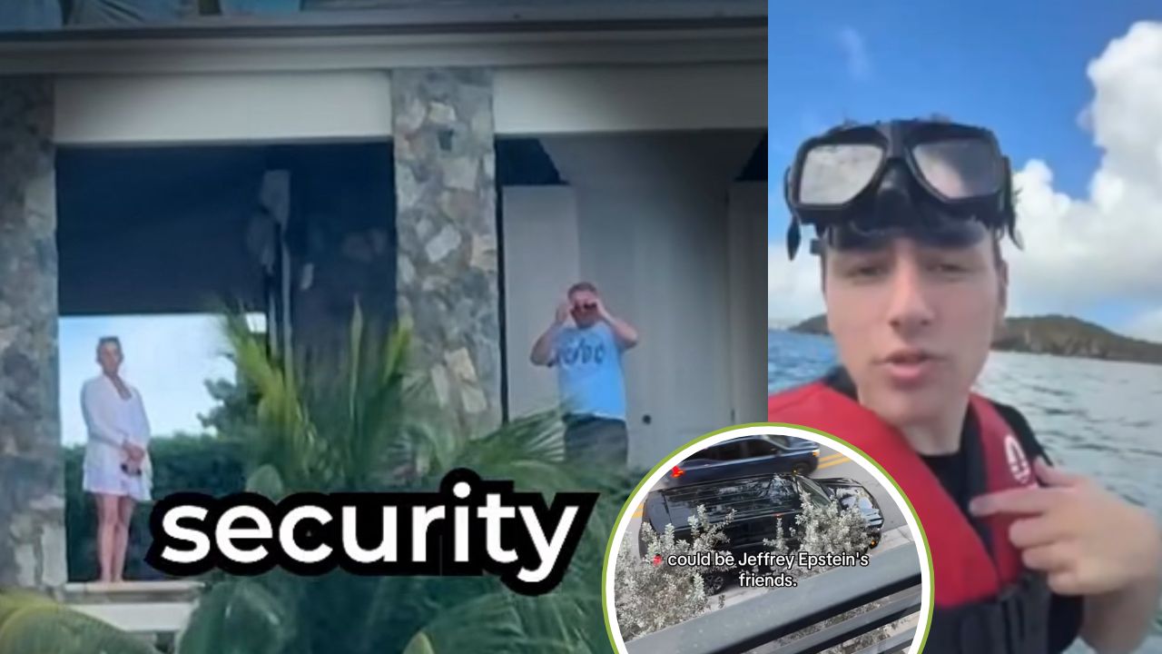 Jeffrey Epstein के कुख्यात लिटिल सेंट जेम्स आइलैंड तक पहुंचने की कोशिश करने वाले सोशल मीडिया स्टार Nico Grigg का वीडियो वायरल हो गया है. अब उसने दावा किया है कि वीडियो के बाद उसके घर के बाहर रहस्यमयी काली SUVs नजर आ रही हैं.;