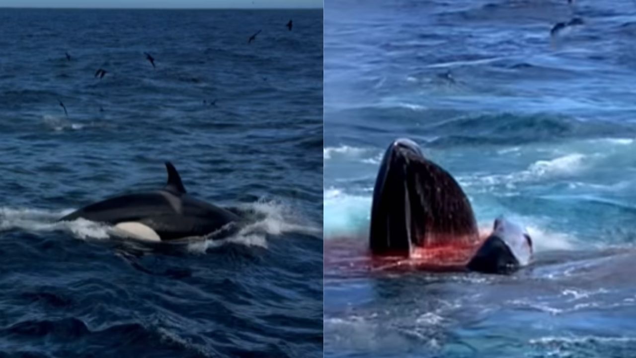 ऑर्का व्हेल्स ने पिग्मी ब्लू का पीछा करने लगी. फिर जान बचाने के लिए पिग्मी थक गई, उसे इतना थका दिया और फिर चारों और से घेर लिया. सभी ने पिग्मी पर अटैक किया और अपनी जीत का जश्न मनाया. बता दें कि ऑर्का को सबसे ताकतवर शिकारी माना जाता है. यह डॉल्फिन की सबसे बड़ी प्रजाति है, जो कि झुंड में शिकार करती है.