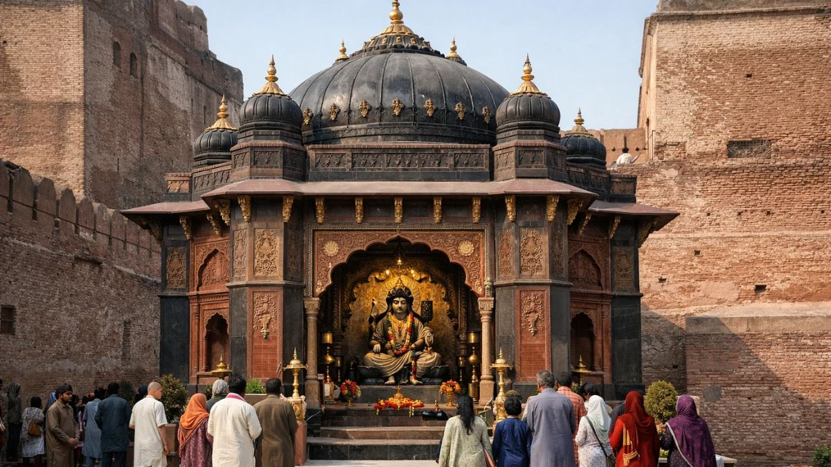 (Image Source: Sora_ AI )Lord Ram's Son Temple restored in Pakistan: गणतंत्र दिवस के अगले ही दिन पाकिस्तान से भारत के लिए एक बड़ी खुशखबरी सामने आई है. लाहौर किले (Lahore Fort) में स्थित लौह मंदिर (Loh Mandir) का जीर्णोद्धार कार्य पूरा हो गया है, जिसके के बाद इसे अब आम श्रद्धालुओं के लिए खोल दिया गया है. यह मंदिर हिन्दू मान्यताओं के अनुसार भगवान श्रीराम के पुत्र लव (Lava) को समर्पित है. माना जाता है कि उनके नाम पर ही लाहौर शहर का नाम पड़ा था.
