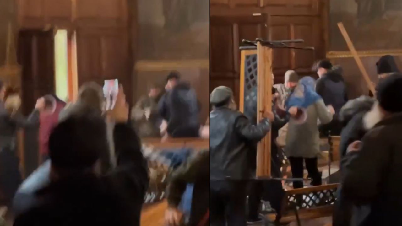 यूक्रेन के सेंट माइकल कैथेड्रल में एक वीडियो सोशल मीडिया पर तेजी से वायरल हो रहा है, जिसमें मॉस्को पैट्रियार्केट के समर्थकों और यूक्रेनी ऑर्थोडॉक्स चर्च (OCU) के समर्थकों के बीच हिंसक झड़पें हो रही हैं. रिपोर्ट्स के अनुसार, यह संघर्ष तब शुरू हुआ जब मॉस्को पैट्रियार्केट के समर्थक चर्च पर हमला करने की कोशिश कर रहे थे, जिसके कारण अराजकता फैल गई.