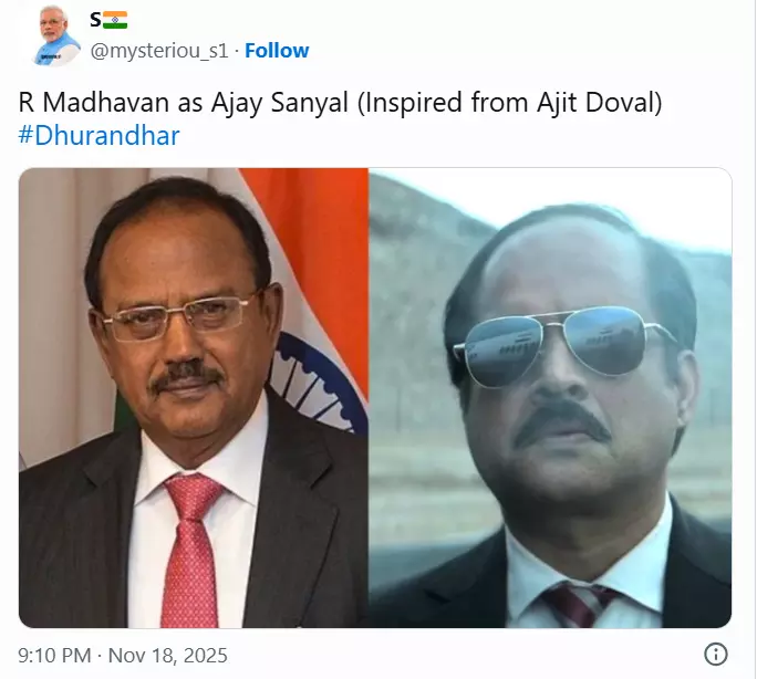 माधवन गंजा लुक, चश्मा और शांत पर बहुत दमदार अंदाज में नजर आ रहे हैं. उनका किरदार भारत के मौजूदा राष्ट्रीय सुरक्षा सलाहकार और देश के सबसे बड़े जासूस माने जाने वाले अजीत डोभाल सर से प्रेरित है. डोभाल साहब ने पाकिस्तान में हिंदू बनकर सालों जासूसी की, कंधार विमान अपहरण मामले में बातचीत की, 2016 की सर्जिकल स्ट्राइक और 2019 के बालाकोट एयर स्ट्राइक में बहुत बड़ी भूमिका निभाई. ट्रेलर में माधवन का वह डायलॉग 'दुश्मन के घर में घुसकर मारना ही पड़ता है' बिल्कुल अजीत डोभाल के असली विचारों जैसा लगता है.
