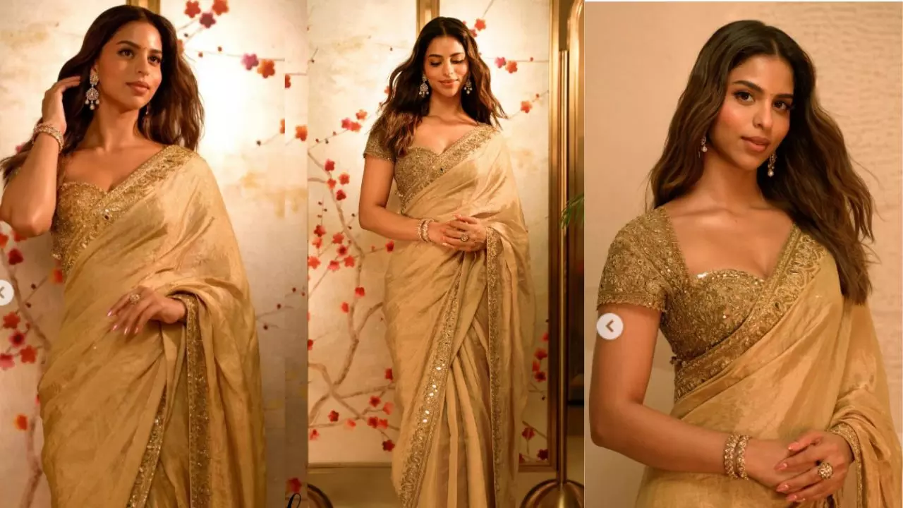 शाहरुख खान की लाडली सुहाना खान एक बार फिर अपने एथनिक अंदाज़ को लेकर चर्चा में हैं. इस बार वह नजर आईं करीब ₹1.91 लाख की गोल्ड टिश्यू साड़ी में, जिसमें उनका लुक बेहद रॉयल और सॉफ्ट एलिगेंस से भरपूर दिखा. हल्के सुनहरे टोन और बारीक हैंड एम्ब्रॉयडरी ने उनकी इस साड़ी को एक ऐसा फेस्टिव और ग्रेसफुल टच दिया, जिसने उन्हें किसी चांद जैसी खूबसूरती का एहसास दिला दिया.