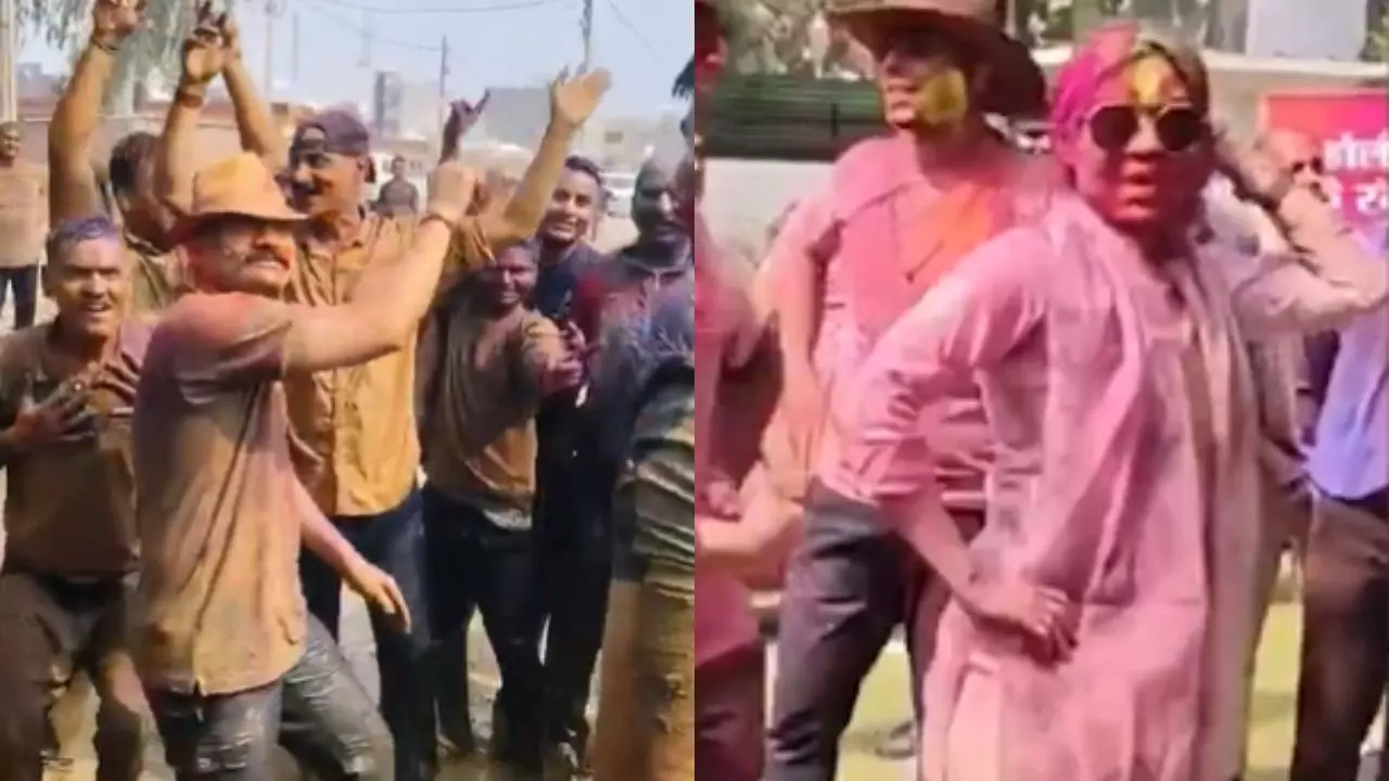एसपी कृष्ण कुमार बिश्नोई ने अक्षय खन्ना के मशहूर किरदार ‘रहमान डकैत’ की स्टाइल को हूबहू मंच पर उतार दिया. उन्होंने सिर पर शिकारी हैट पहन रखी थी और पूरे जोश के साथ फिल्मी स्टेप्स करते दिखे. इतना ही नहीं, उन्होंने फायर ब्रिगेड की पाइप से पुलिसकर्मियों पर पानी की बौछारें भी डालीं. ‘पीले-पीले ओ मेरे जानी’ और ‘गुलाब जइसन खिलल बाड़ू’ जैसे गानों पर भी एसपी और पुलिसकर्मी जमकर थिरकते नजर आए.