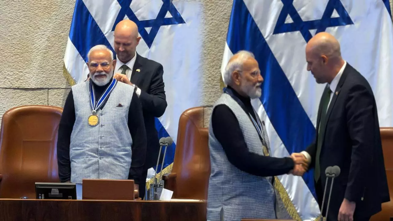Narendra Modi got Knesset Medal: भारत के प्रधानमंत्री नरेंद्र मोदी बुधवार को उन चुनिंदा वर्ल्ड लीडर्स में शामिल हो गए हैं, जिन्होंने इज़राइल और फ़िलिस्तीन दोनों से टॉप राज्य सम्मान प्राप्त किया है. भारत के प्रधानमंत्री मोदी पहले ऐसे शख्स बन गए हैं जिन्हें इज़राइल ने Knesset Medal दिया है यह सम्मान उन्हें इज़राइल की संसद कनेसैट में अपने संबोधन के बाद दिया गया है.