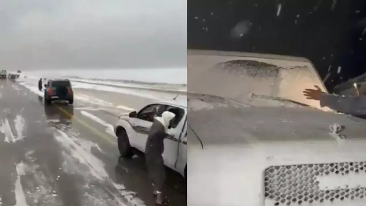 यह वायरल वीडियो सऊदी अरब के पूर्वी प्रांत में स्थित अल-अहसा क्षेत्र का बताया जा रहा है. सऊदी अरब को हमेशा से अपनी भयंकर गर्मी और विशाल रेगिस्तानों के लिए जाना जाता है, जहां तापमान अक्सर 50 डिग्री सेल्सियस से ऊपर चला जाता है. लेकिन हाल ही में आए एक मजबूत ठंडे मौसमी सिस्टम के कारण कुछ इलाकों में तापमान बहुत नीचे गिर गया.